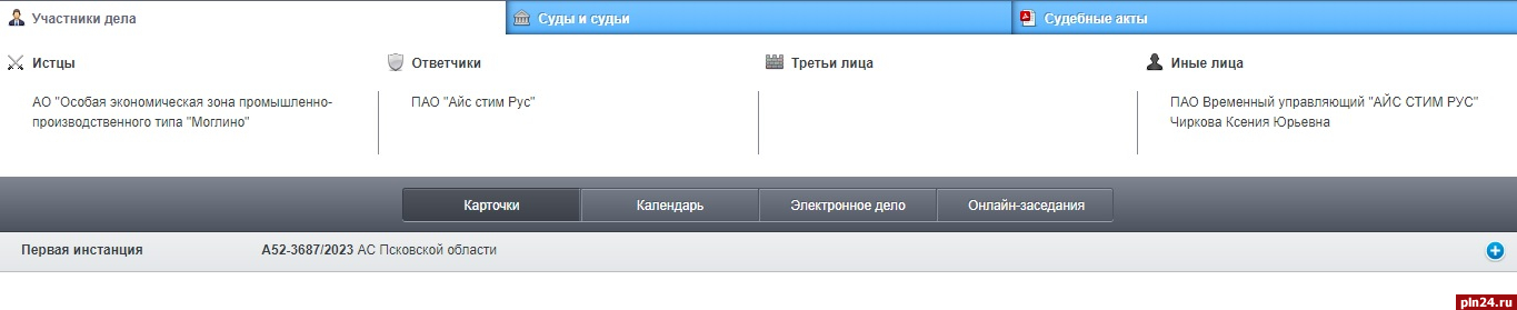 Напомним, ранее ОЭЗ «Моглино» подавала в суд на ПАО «Айс Стим Рус» в марте, в мае и в июне 2022 года.