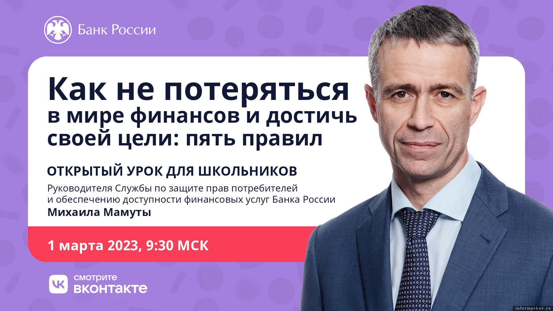 Олимпиаду откроет онлайн-урок руководителя Службы по защите прав потребителей и обеспечению доступности финансовых услуг Банка России Михаила Мамуты «Как не потеряться в мире финансов и достичь своей цели: пять правил». Трансляция пройдет 1 марта в 9:30 по московскому времени: в сообществе регулятора «ВКонтакте» можно будет задать вопросы спикеру. Присоединиться к уроку можно будет и в личных кабинетах учеников 6-11 классов и учителей на Учи.ру.