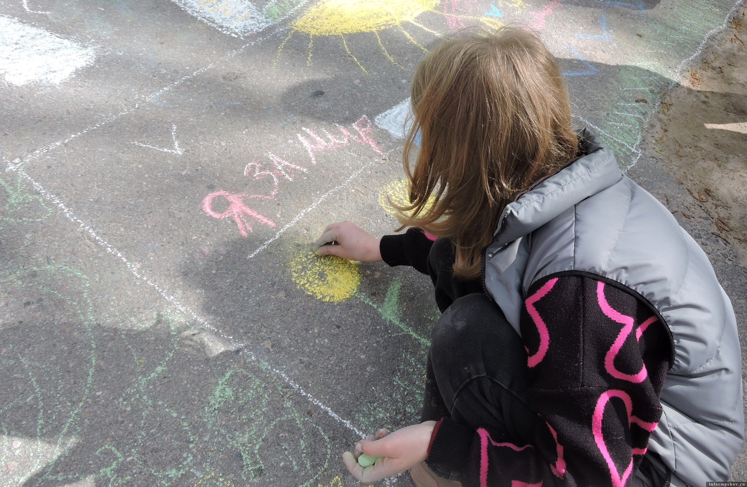 Также в этот день на старой площади прошла акция «Мы zа мир!» – дети создавали рисунки на асфальте. Ребята самых разных возрастов старательно рисовали мелками Государственный флаг Российской Федерации, сердечки с признаниями в любви к родной стране, разноцветные дома, белых голубей, цветы, яркое солнце и голубое небо - все то, что являет собой мирную жизнь. Вскоре к детям присоединились и взрослые.