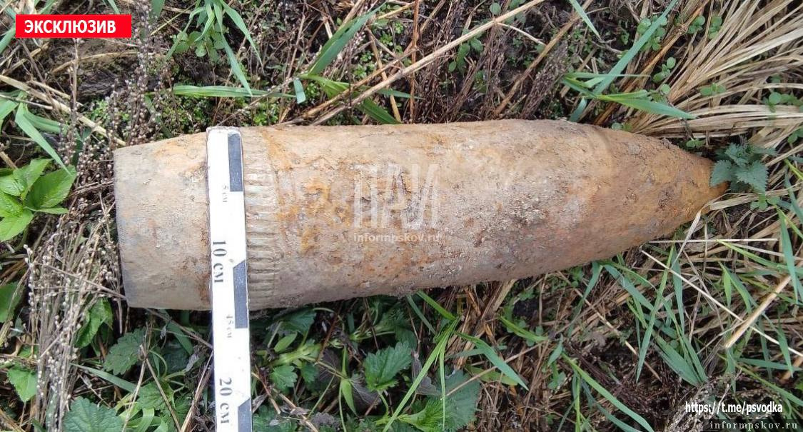 Боеприпас нашли в деревне Рыжаково. Группа разминирования поисково-спасательного отряда города Пскова идентифицировала артиллерийский снаряд калибра 152 мм.