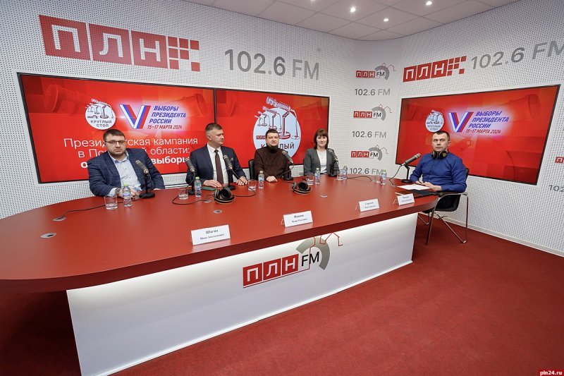 Наталья Исакова, член Общественной палаты Российской Федерации от Псковской области; Илья Стрелков, председатель Общественного штаба по наблюдению за выборами при Общественной палате Псковской области, глава «Экспертного клуба: Псковский регион»; Игорь Иванов, председатель Псковского областного совета профсоюзов; Иван Шагин, член Общественной палаты Псковской области, кандидат исторических наук.Речь пошла о значении президентской кампании, участии представителей общественности в наблюдении за выборами, обеспечении их легитимности и на другие актуальные темы. В качестве модератора дискуссии выступил главный редактор интернет-портала Псковская Лента Новостей Александр Савенко.