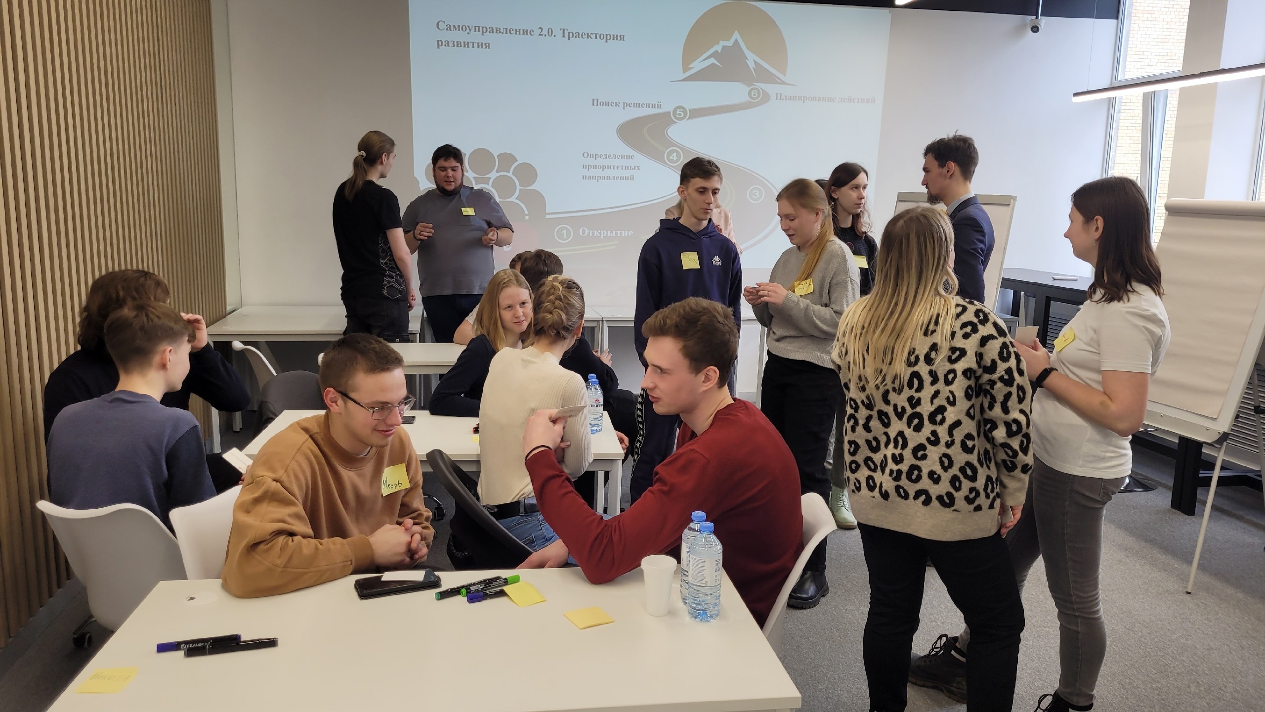 Модерационная сессия под названием «Самоуправление 2.0. Траектория развития» прошла сегодня в «Точке кипения». Спикером встречи стала выпускница Мастерской управления «Сенеж» Анастасия Львова. Она научила участников мероприятия планировать свои действия для достижения целей по развитию студенческого самоуправления.
