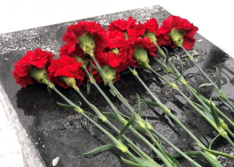 Стражи порядка и представители общественного совета при ОМВД принесли гвоздики к надгробию начальника городской полиции Михаила Русакова, который героически погиб в июле 1941 года при защите Великих Лук.