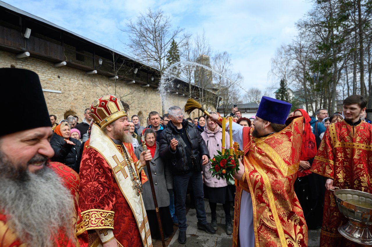 Его Высокопреосвященству сослужили наместники монастырей, благочинные церковных округов, настоятели и клирики храмов епархии, секретарь и заведующий канцелярией Псковского епархиального управления,