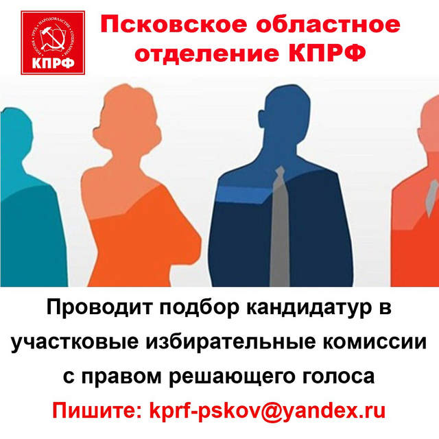 Псковское областное отделение КПРФ проводит подбор кандидатур в участковые избирательные комиссии с правом решающего голоса.