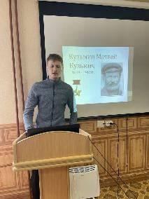 16 марта сообщение-презентацию "Улица Матвея Кузьмина" представил обучающийся 42 группы Дмитрий Бурляков .