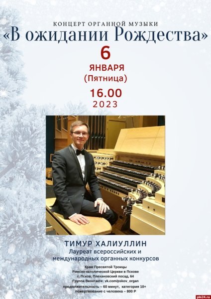 Рождественский концерт органной музыки из цикла «В ожидании Рождества» пройдет в Пскове.