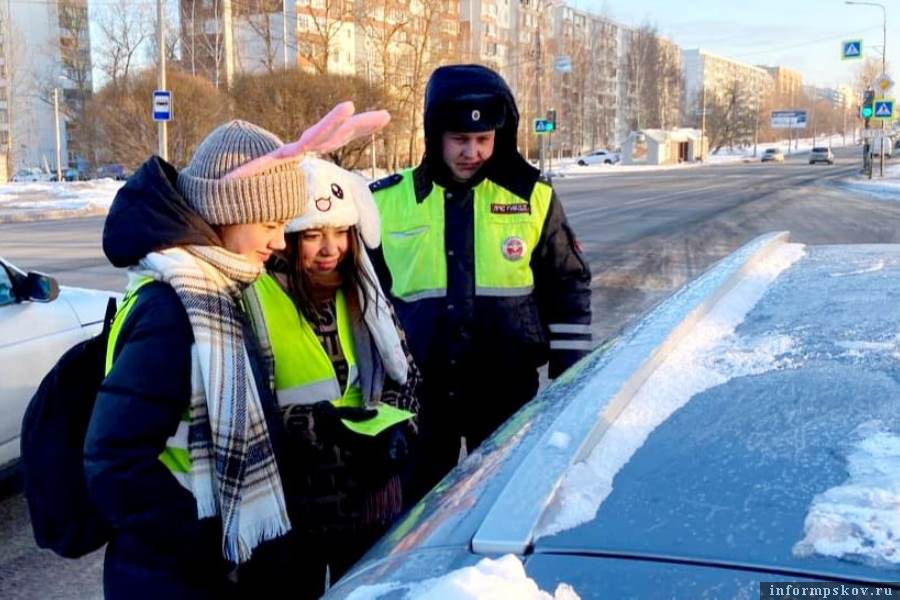 Ребята, не побоявшись рождественских морозов, вышли на центральную улицу города Пскова с призывом к водителям о неукоснительном соблюдении правил дорожного движения. Участники отряда юных инспекторов дорожного движения, переодевшись в праздничные костюмы, раздавали автомобилистам памятки и пожелания, которые изготовили сами.