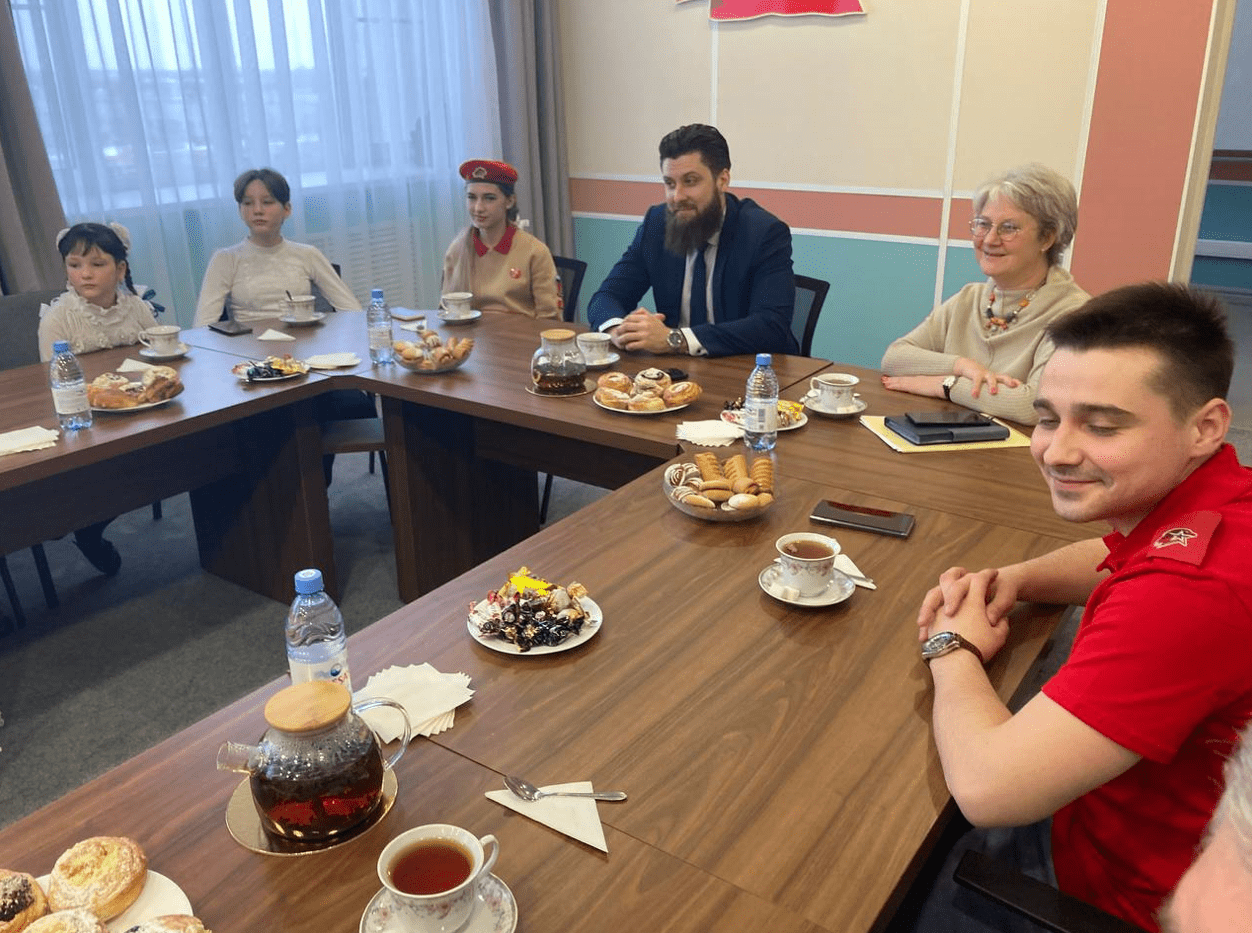 О патриотическом движении в городе присутствующим подробно рассказал начальник городского штаба "Юнармии" Артем Баринов. Гости поделились своими первыми впечатлениями о городе и рассказали об участии во всероссийских конкурсах и патриотической работе в их родной школе, где особенно чтят память отважного красноармейца.