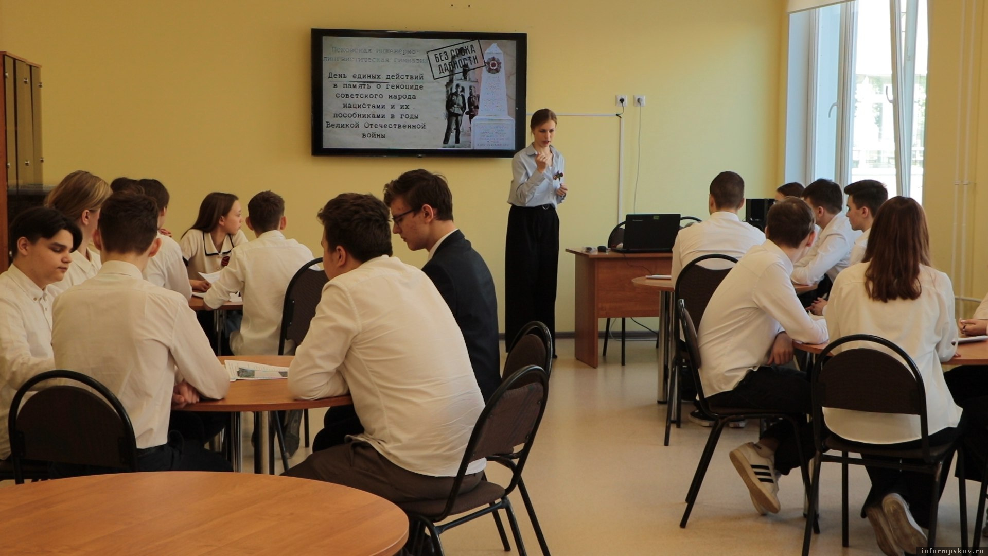 Псков стал одним из десяти городов, который в режиме видеосвязи показал и рассказал, какие мероприятия, посвящённые сохранению исторической памяти, проходят в регионе, урок мужества — один из них.
