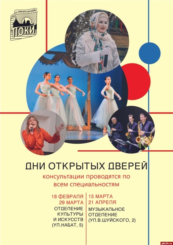 Псковский областной колледж искусств имени Н. А. Римского-Корсакова приглашает учащихся старших классов общеобразовательных школ, детских школ искусств, музыкальных и художественных школ на День открытых дверей,