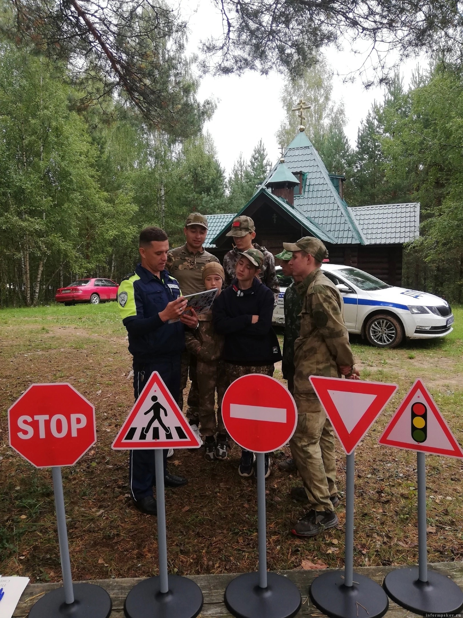 Инспектор ОГИБДД по Пушкиногорского району лейтенант полиции Павел Тупицин совместно с юными патриотами смоделировал безопасный маршрут школа – дом. Ребята расставили на макете дорожные знаки и даже получили первые навыки вождения, разобрав возможные аварийные ситуации на дороге. Старший инспектор ОГИБДД по Пушкиногорскому району старший лейтенант полиции Михаил Никифоров научил ребят разбираться в различных дорожных ситуациях, уделив особое внимание причинам дорожно-транспортных происшествий.