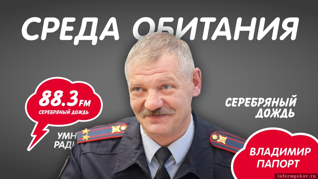 Программа «Среда обитания» выйдет в эфир радиостанции «Серебряный дождь» в Пскове (88.3 FM) сегодня, 11 января, в 14:00. Собеседником ведущих Максима Андреева и Елены Лешкиной станет начальник ОГИБДД УМВД России по городу Пскову Владимир Папорт.