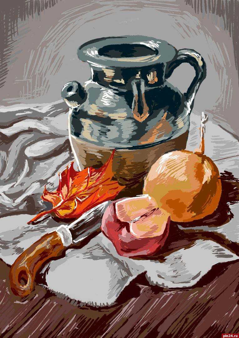 Студенты второго курса специальности «Дизайн» Псковского областного колледжа искусств имени Н. А. Римского-Корсакова приняли участие в республиканской выставке-конкурсе студенческих работ «Осенний натюрморт».