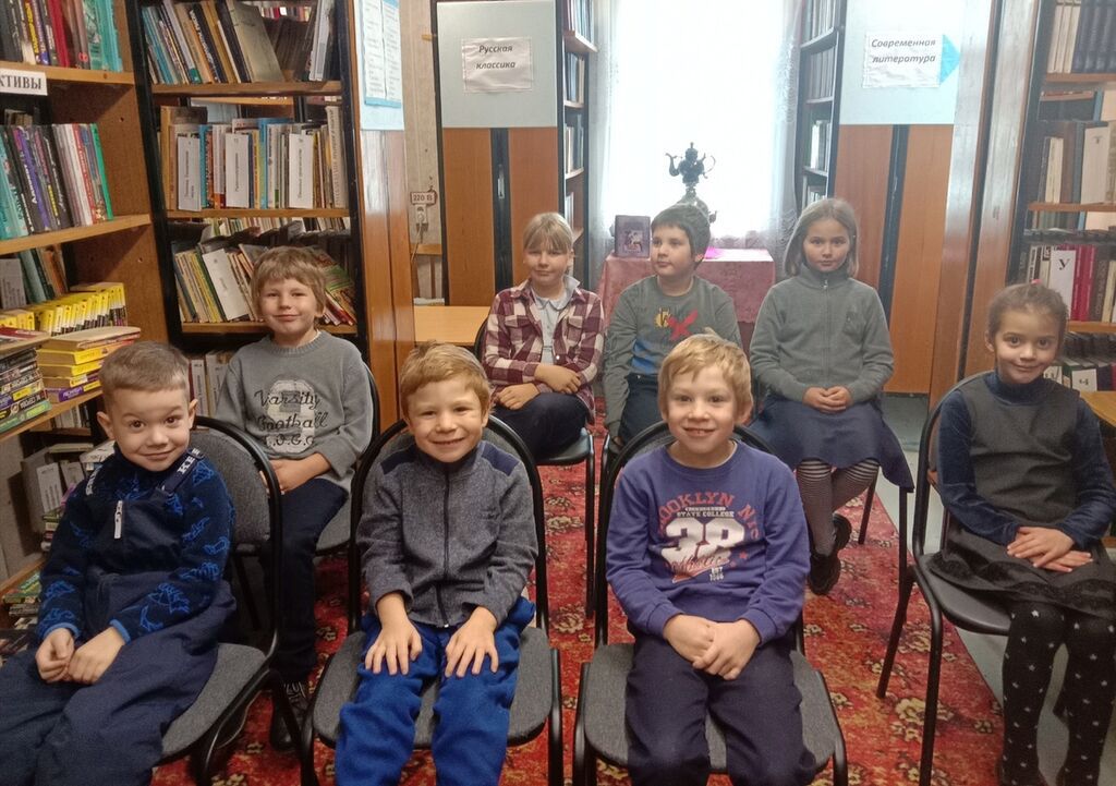 Ребята посмотрели мультфильм "Маленький водяной". Затем в дверь библиотеки кто-то постучался, и ребята узнали персонажа из сказки Отфрида Пройслера Бабу Ягу, которая была рада подружиться с ребятами. Все дружно играли в игры, отгадывали загадки.