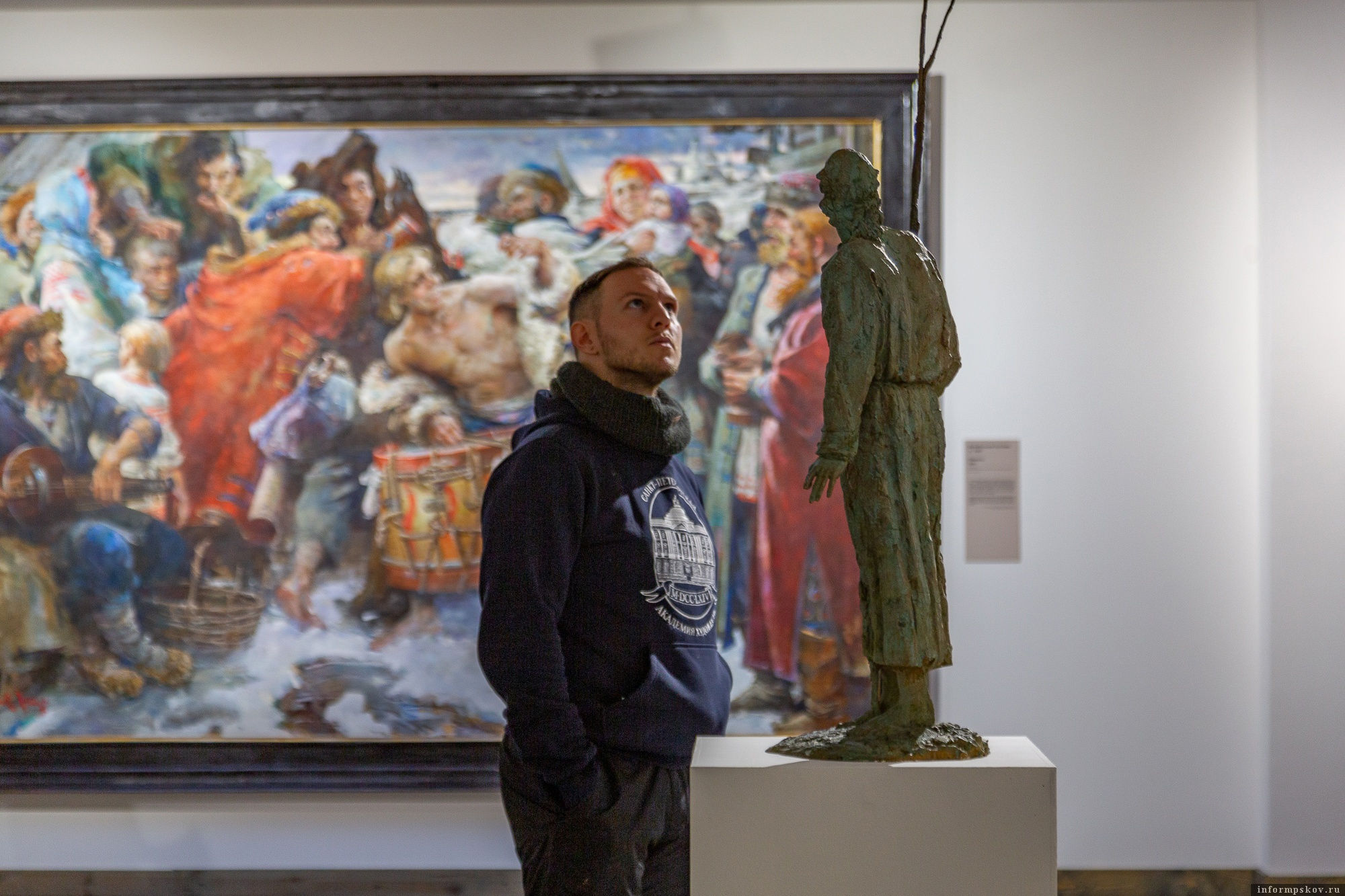Студенты и преподаватели Санкт-Петербургской академии художеств имени Ильи Репина, принимающие участие в творческой экспедиции «Псков-2023», посетили выставку «Россия.
