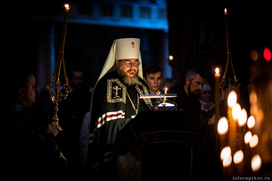 27 февраля в Свято-Успенском Псково-Печерском монастыре Великое повечерие с чтением Великого покаянного канона совершил митрополит Тихон.