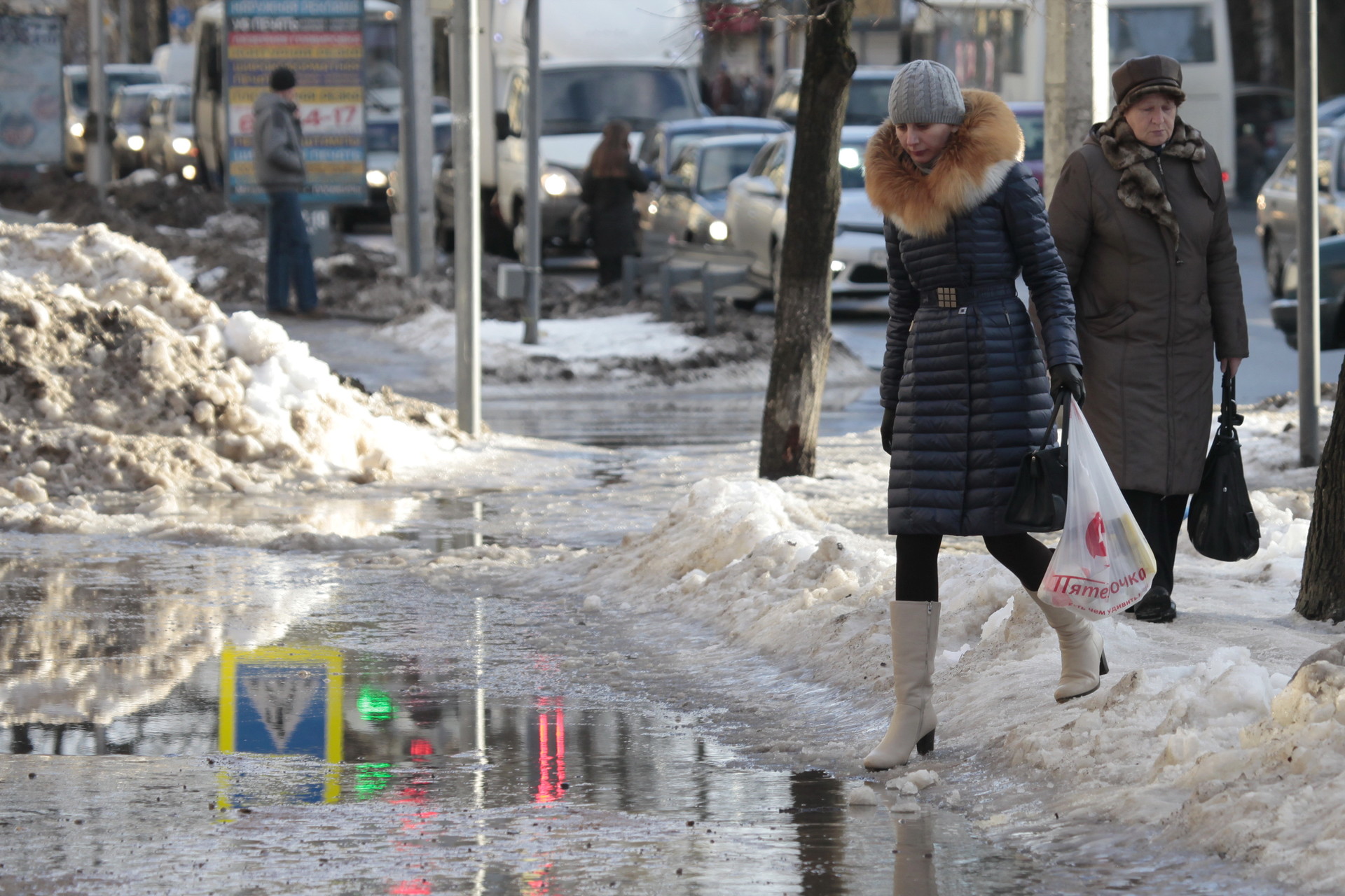 Прогнозируются небольшие осадки днем, ночью умеренные, в виде мокрого снега и дождя. На дорогах местами образуется гололедица.