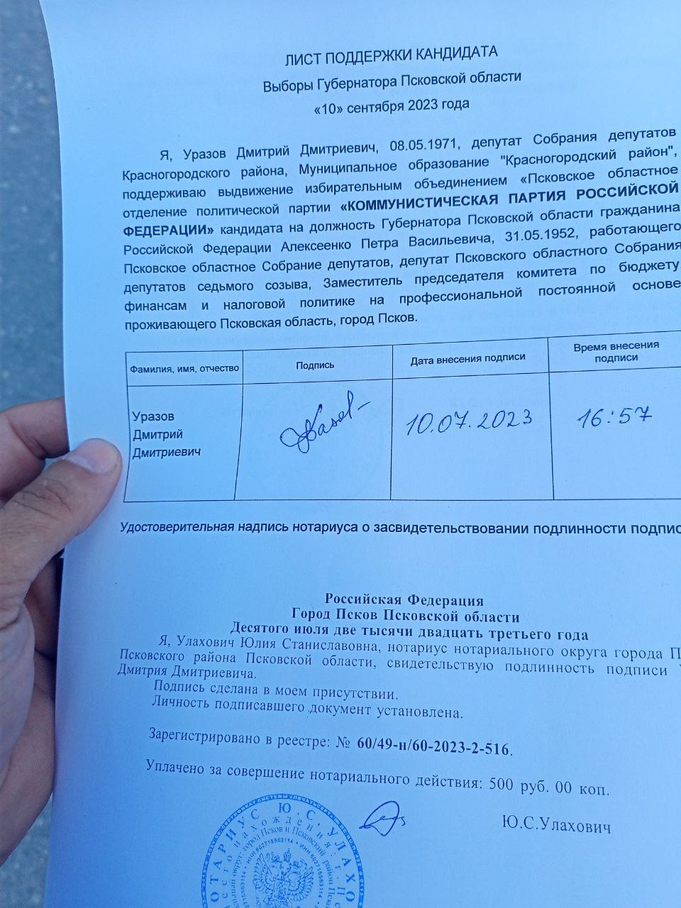 Параллельно проходят выборы губернатора Псковской области. Левый Фронт поддерживает кандидата от КПРФ, первого секретаря областного комитета компартии Петра Васильевича Алексеенко.
