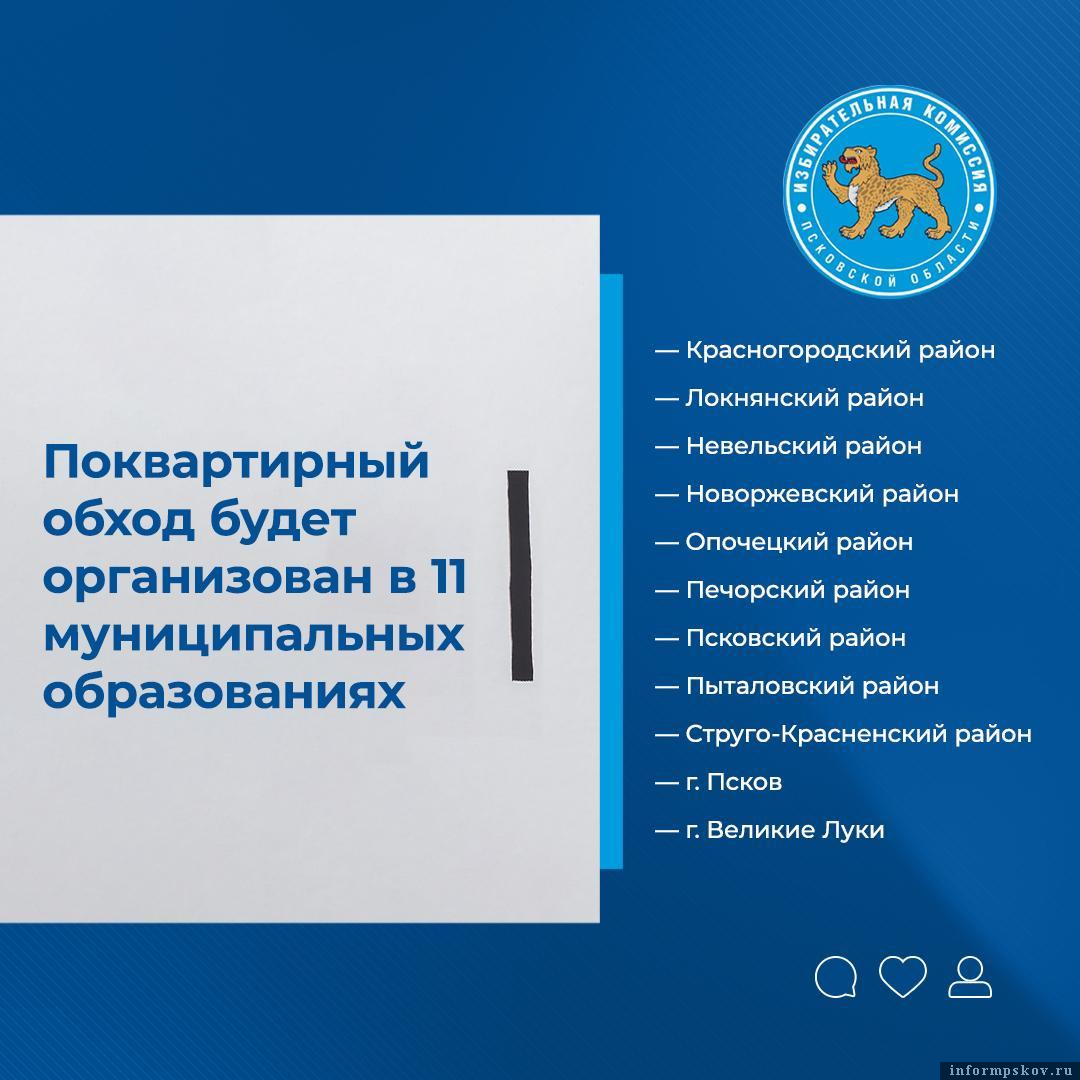 Поквартирный обход жителей Псковской области с целью информирования о выборах начнётся 7 августа. Об этом сообщается в Telegram-канале региональной избирательной комиссии.