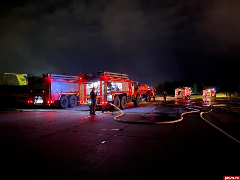 Свыше 60 человек тушили пожар в результате атаки Псковского аэропорта беспилотниками