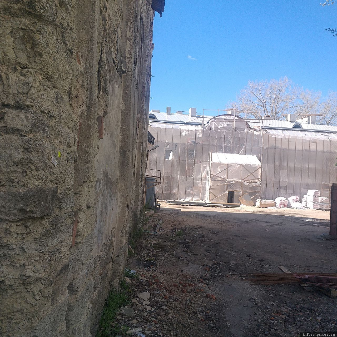 Историческому зданию возвращают первоначальный облик. Архиерейский дом построен в 1881 г. по проекту петербургского архитектора Новицкого. Впервые встречается на плане Пскова 1890 г., где указано, что в Архиерейском доме есть домовая Крестовая церковь.