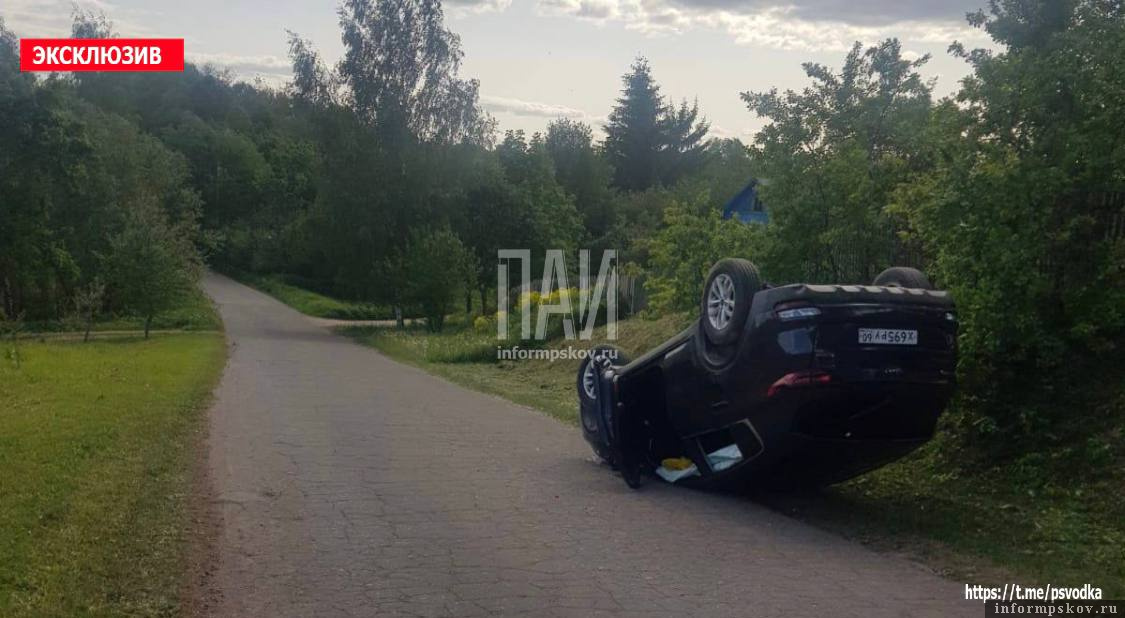 Автомобиль опрокинулся у деревни Рыжаково Великолукского района 27 мая, передаёт корреспондент ПАИ.