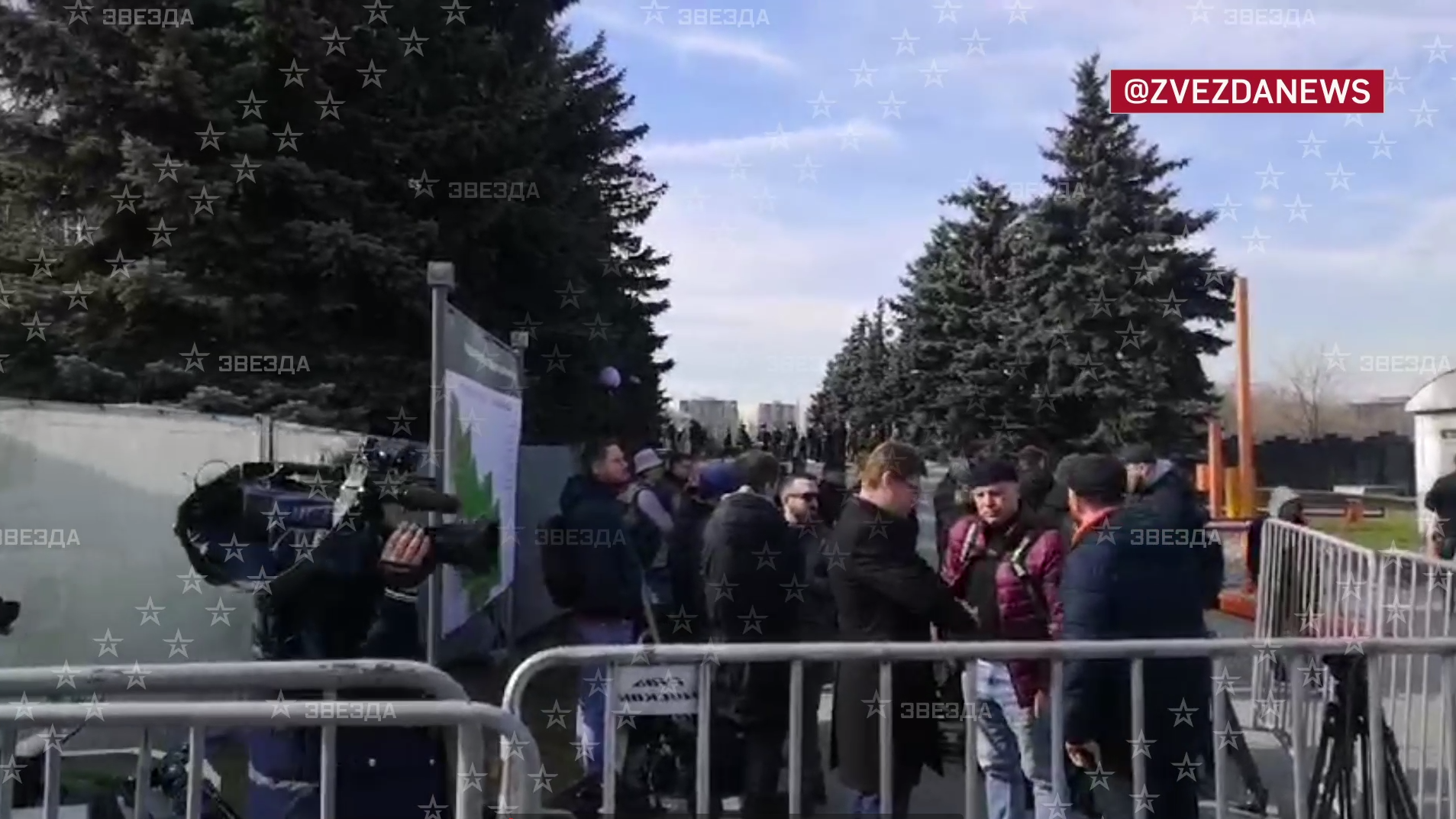 Чтобы проститься с погибшим военным корреспондентом, нужно пройти усиленные кордоны безопасности. Полицейские установили металлические рамки и привлекли кинологов, отметили в Telegram-канале.