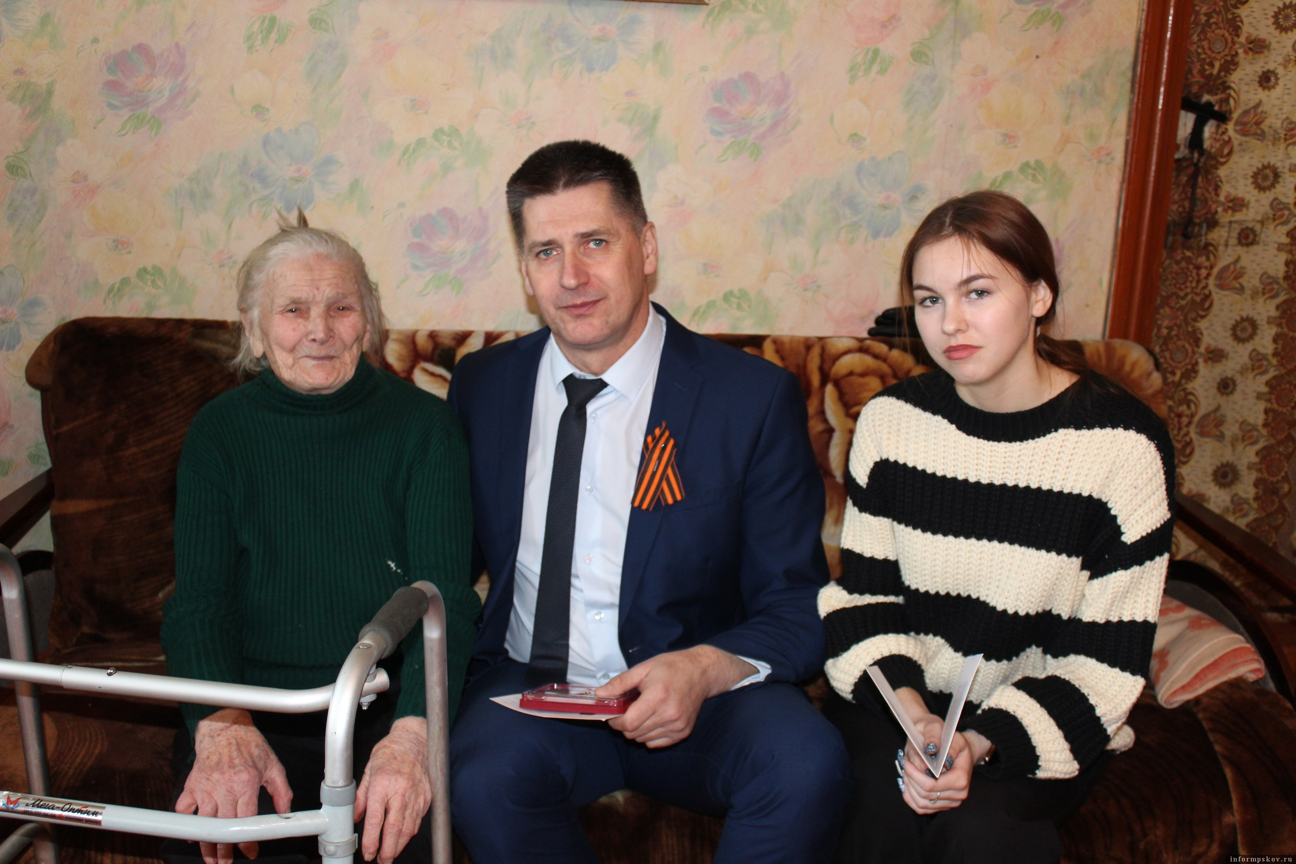 В серии поздравлений ветеранов также приняли участие начальник территориального отдела администрации округа Олег Емельянов, ученица Усвятской средней школы Анастасия Калинина.