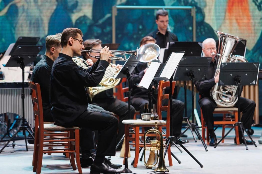 Всего на сцене выступили 16 музыкантов: 12 духовиков, три ударника и главный дирижёр Алексей Репников.