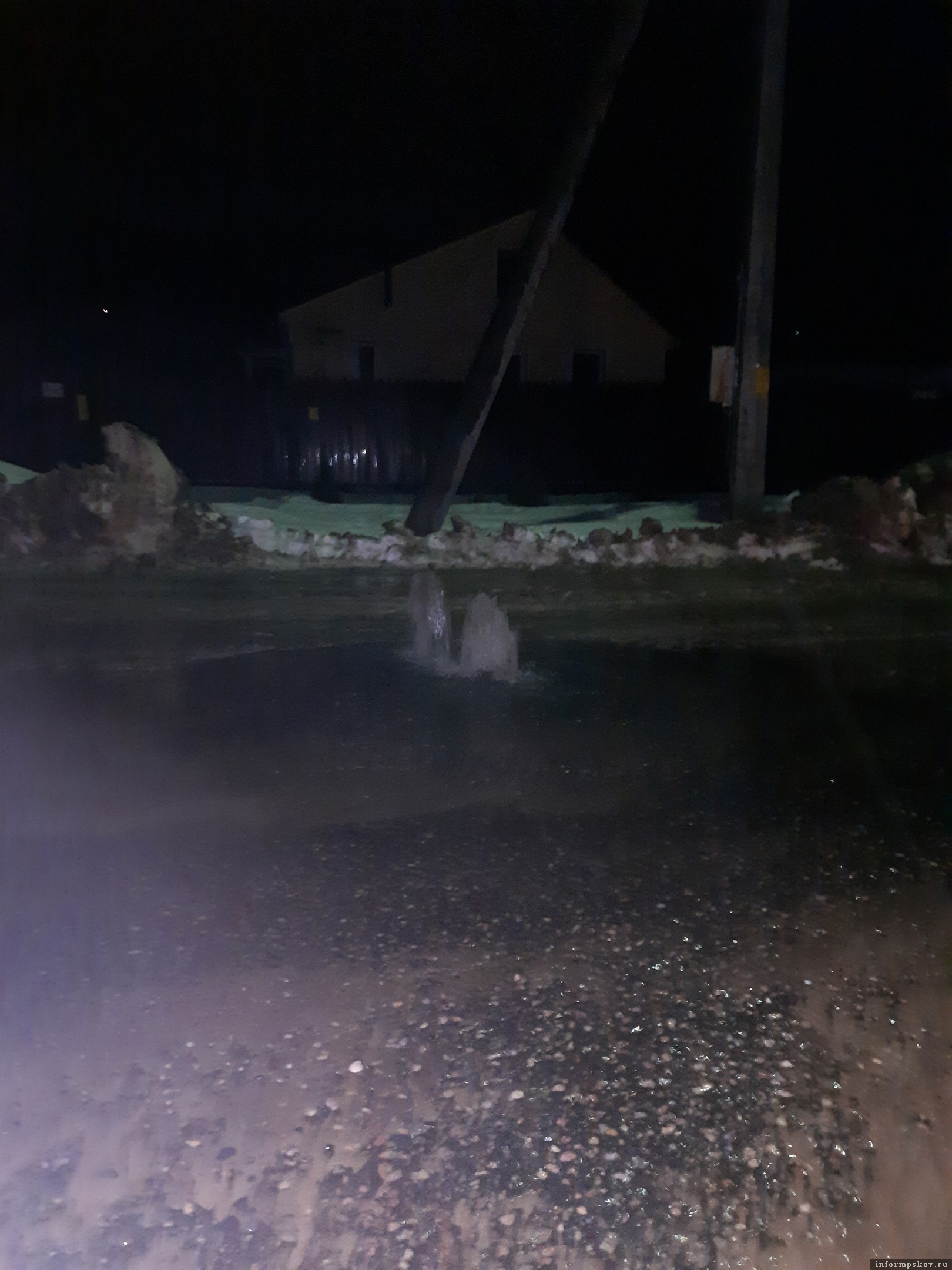 В Печорах сразу после съезда с ул. Ленина на ул. Набережную с правой стороны из канализационных люков бьют три фонтана.