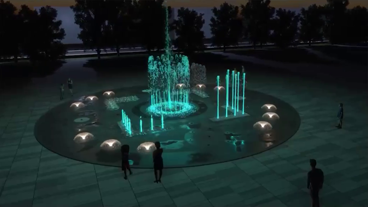 Отметим, что фонтан будет оснащён видеопроекторами и системой проецирования изображения на воду.