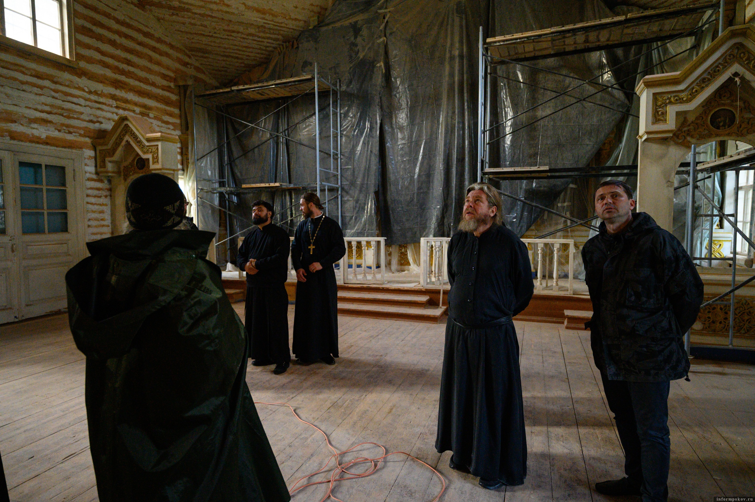 Митрополит Тихон проконтролировал ход строительства верхнего придела в храме Псковского района