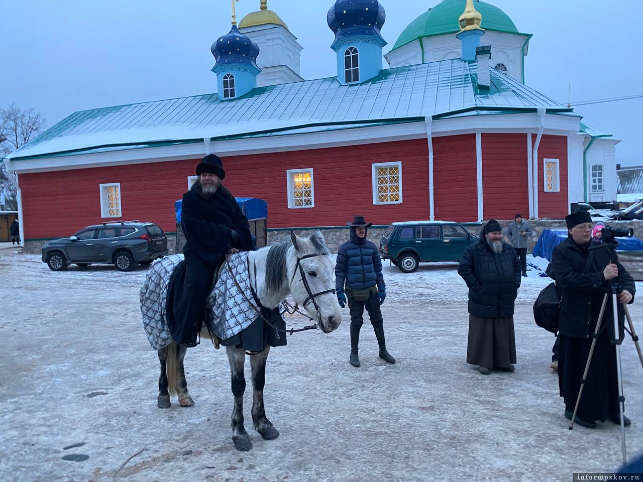 Митрополит Тихон верхом приехал в рождественский городок в Печорах