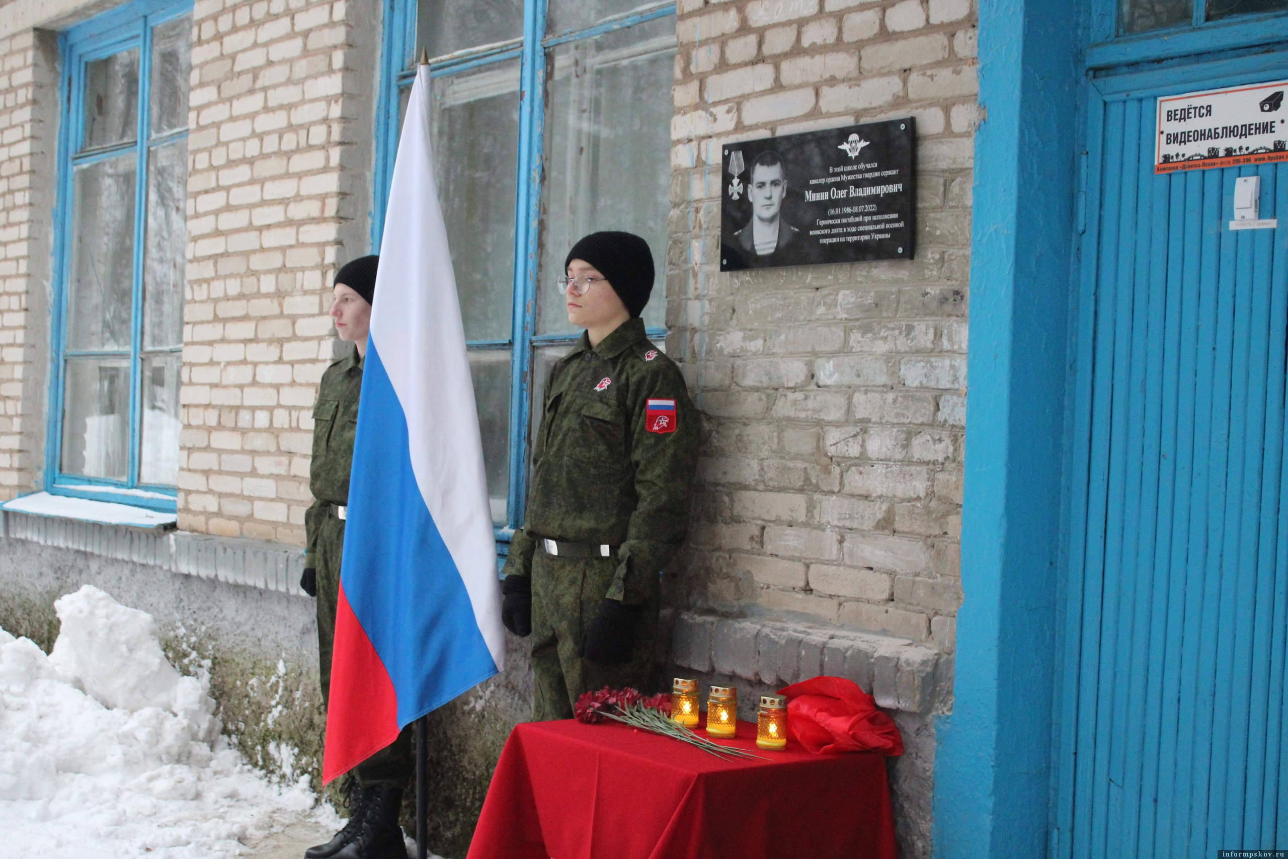 Мемориальную доску в честь уроженца деревни Полоное, кавалера ордена Мужества, гвардии сержанта Олега Минина открыли на фасаде здания Полонской школы в Порховском районе.