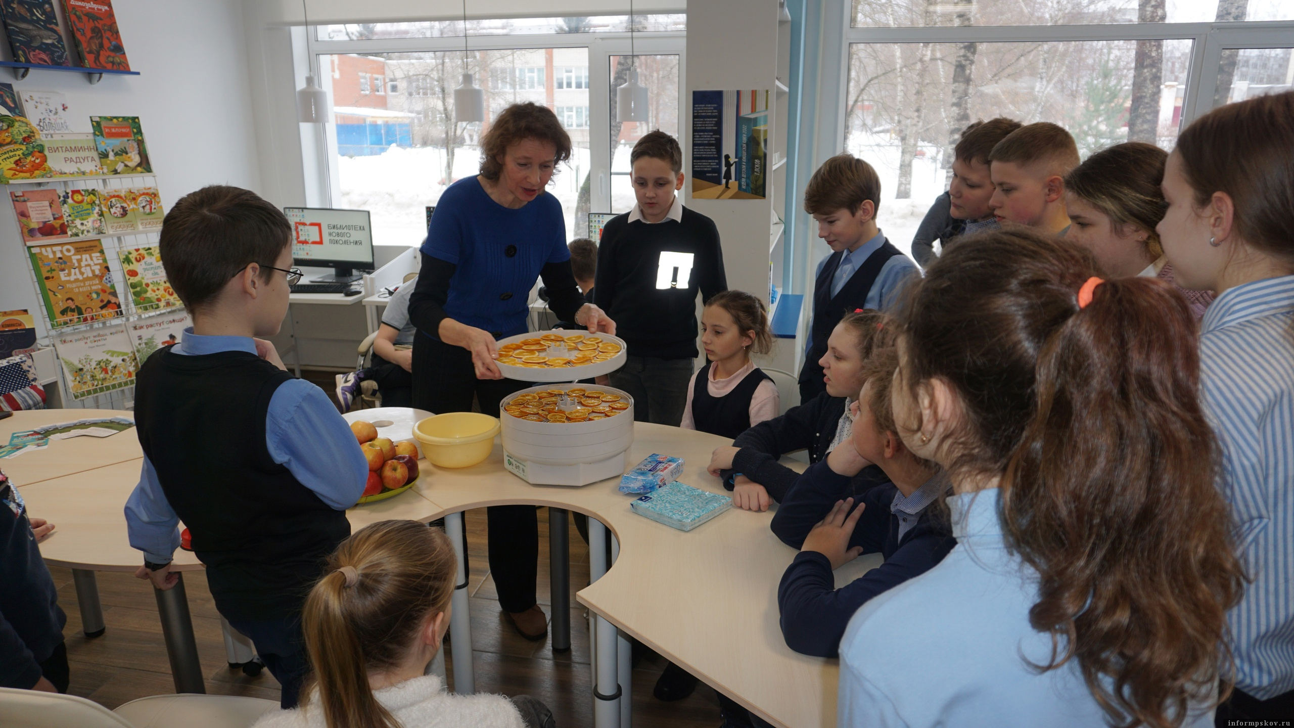В псковской Детской экологической библиотеке «Радуга» прошла встреча читателей со специалистами «Органик-центра "Активное село"» из деревни Логозовичи. Они провели для детей тематическое занятие под названием «Витаминная радуга», во время которого ребята познакомились с работой органик-центра и узнали, как производится натуральная фермерская экопродукция: удивительные чипсы (или слайсы) из яблок, лимонов, апельсинов, клубники и даже кабачков и редиса, а также псковский чай из кипрея (иван-чая) с добавлением исландского мха и цукаты из натуральных фруктов и овощей.
