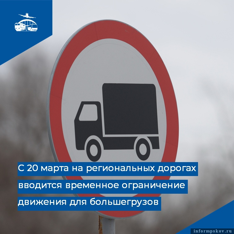 С 20 марта по 18 апреля вводится временное ограничение движения транспортных средств с грузом или без груза, следующих по автомобильным дорогам общего пользования регионального значения Псковской области,