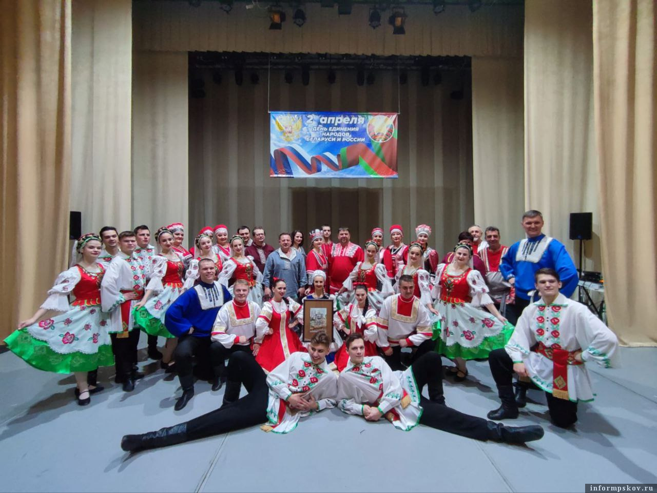 Псковский ансамбль «Сказ» и группа «Саморезы» дали праздничный концерт совместно с белорусскими коллективами в Витебской областной филармонии. Мероприятие приурочено ко Дню единения народов России и Белоруссии, сообщил ПАИ руководитель ансамбля «Сказ» Константин Абабков.
