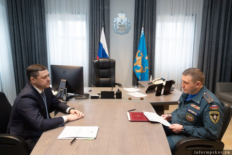 Губернатор Псковской области Михаил Ведерников во вторник, 14 марта, провел рабочую встречу с врио начальника Главного Управления МЧС России по Псковской области Сергеем Лаврухиным.
