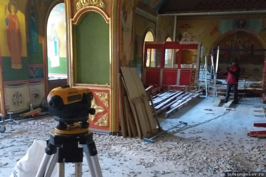 В Сретенской церкви Псково-Печерского монастыря началась подготовка к предстоящей реставрации.