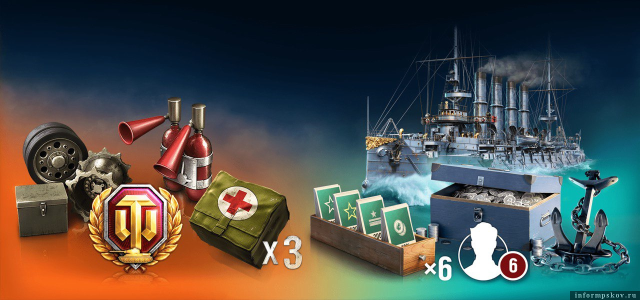 В снаряжение в игре «Мир танков» входят автоматические огнетушители, большие ремкомплекты и аптечки. С этим набором игроки смогут улучшать характеристики танка и экипажа, стать более стойкими, чтобы выполнять все боевые задачи. Бонусы в игре «Мир кораблей» включают: кредиты, опыт корабля, опыт командира, свободный опыт. Запас кредитов позволит прокачиваться в игре еще быстрее, проводить установку и демонтаж оборудования на кораблях, обучать командиров, исследовать новые корабли. Задействовав экономические бонусы перед боем, можно играть более продуктивно. Вместе с легендарным крейсером «Варяг» игрок получит дополнительный слот в порту и командира с 6 перками (очками навыков) для комфортной игры.