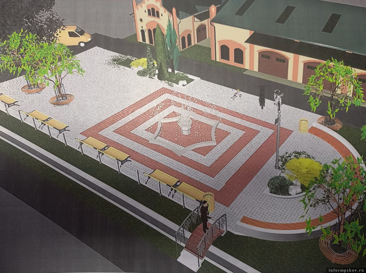 Будут выполнены работы по устройству основания из брусчатки, озеленению территории, устройству клумб и высадке многолетних насаждений. Появятся малые архитектурные формы: скамейки, урны, декоративное ограждение.