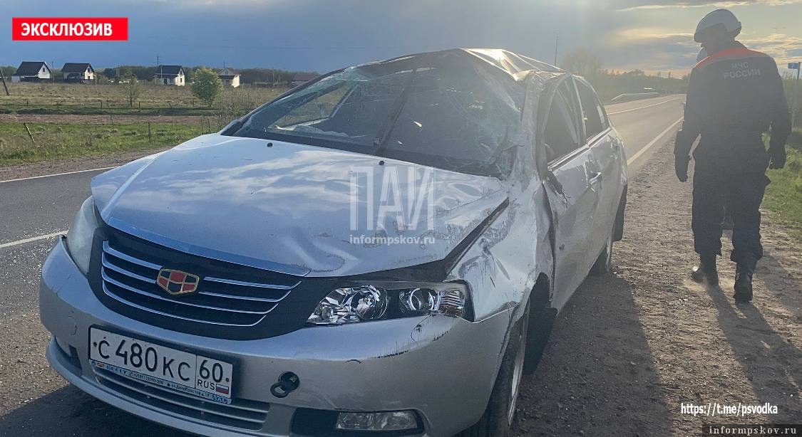 57-летний водитель автомобиля Geely не справился с управлением транспортного средства и допустил его опрокидывание у деревни Щиглицы Псковского района сегодня, 3 мая.
