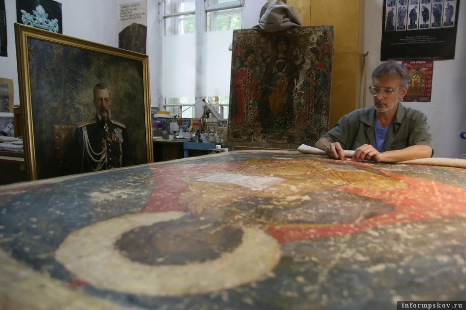 Михаил Владыкин работает в Псковском музее-заповеднике с 1996 года. «За долгие годы своей работы он приложил руку к восстановлению многих шедевров изобразительного искусства и иконописи», - отмечается в сообщении.