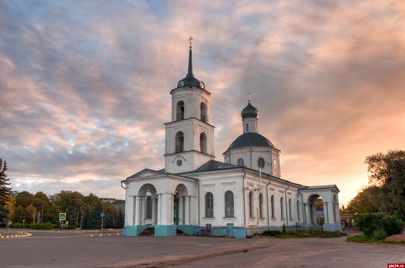 Свято-Троицкий собор - памятник архитектуры XVIII века. Он стоит на берегу реки Великой у моста. Построен собор «повелением Екатерины» на месте старинного деревянного храма, разрушенного войсками Стефана Батория в 1581 году. Его местоположение и размеры определялись ролью главного культового здания города, сообщается на сайте culture.pskov.ru.