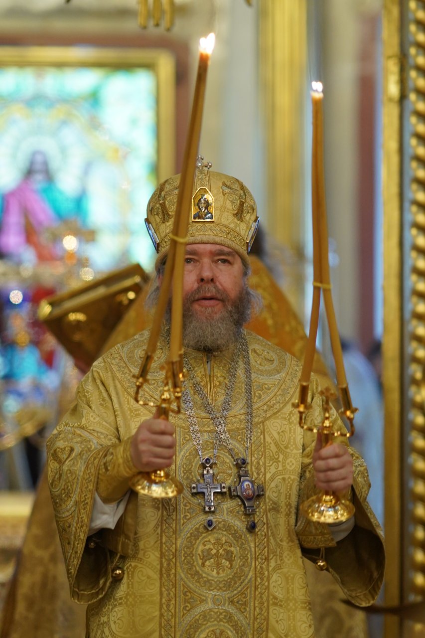 Владыке Тихону сослужили и. о. наместника иеромонах Иларион (Карандеев), священноиноки и гости обители в священном сане.