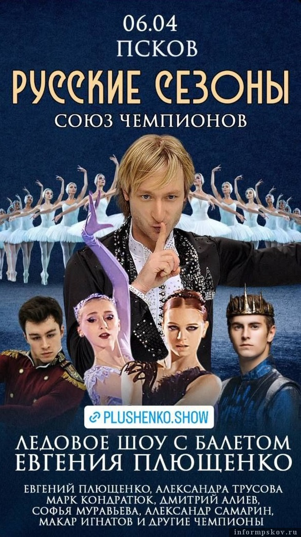 Тур Союза Чемпионов «Русские Сезоны» планирует провести тур по городам России, в том числе и Псков. Об этом сообщает Евгений Плющенко на своей странице в Instagram* (запрещен в России; принадлежит корпорации Meta, которая признана в РФ экстремистской).