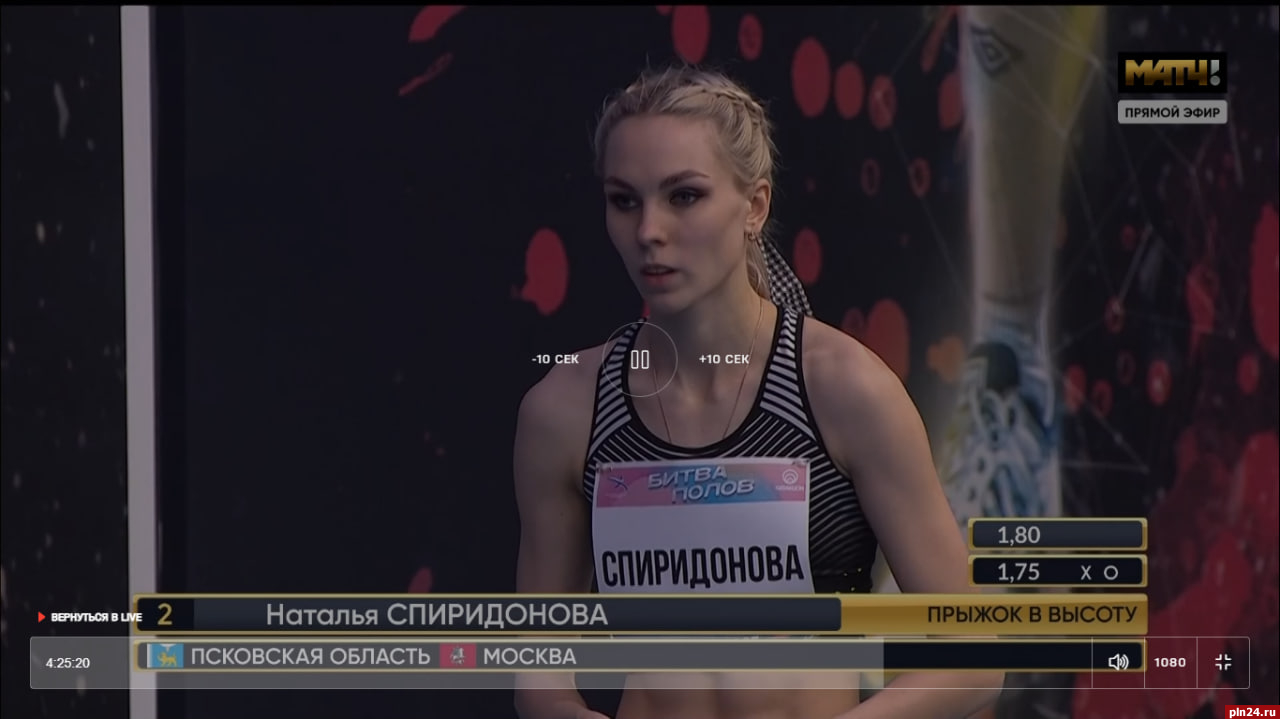 Псковичка Наталья Спиридонова преодолела высоту в 1,9 метра на соревнованиях «Битва полов» в Москве.