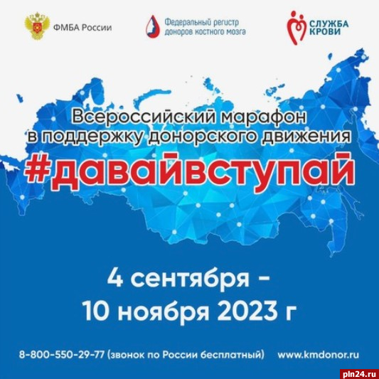 Псковская область примет участие во Всероссийском марафоне в поддержку донорского движения.
