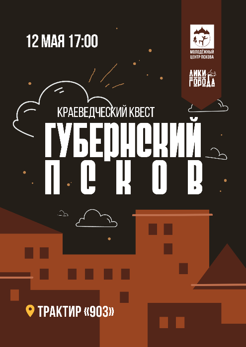 Псковский городской молодёжный центр в рамках проекта «Лики города» приглашает молодёжь Пскова в возрасте от 14 до 35 лет принять участие в краеведческом квесте «Губернский Псков».